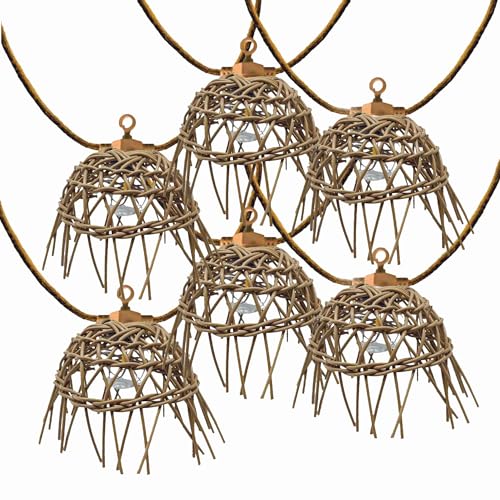 Guirlande lumineuse extérieur raccordable 10 abat-jour naturels en rotin MALY LIGHT HYBRID LED blanc chaud 8m solaire et sur secteur