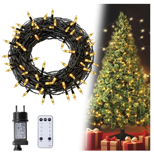Lamptobe Guirlande Lumineuse Sapin de Noël Intérieur/Extérieur, LED 6W 100 LED 10M Alimentation Secteur avec Prise, IP66 Étanche, Blanc Chaud Dimmable avec 8 Modes D’Éclairage, Minuterie pour Jardin
