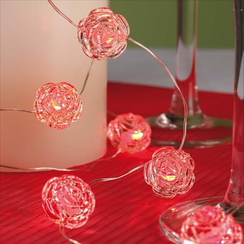 Hellum LED Guirlande lumineuse avec roses, 20 LED rouges, 190 cm eclairées, câble transparent, pour intérieur, fonctionne sur piles (3AA), guirlande lumineuse LED pour Saint Valentin <59 lm 300192