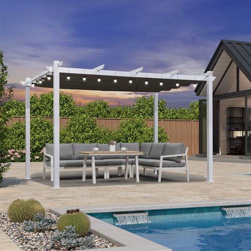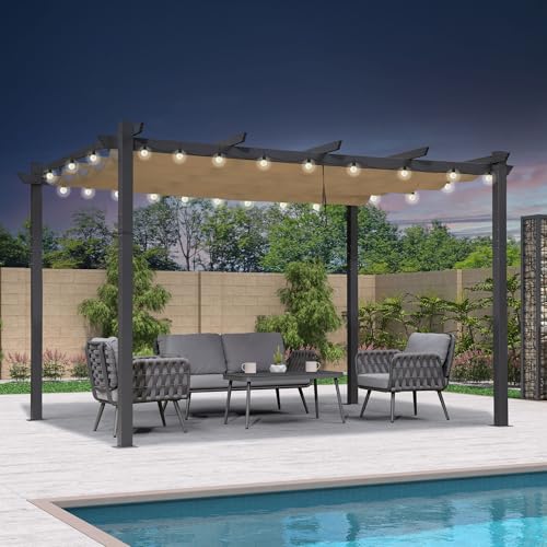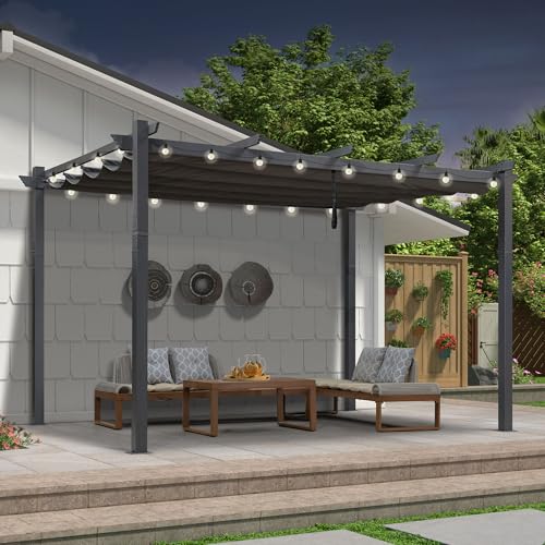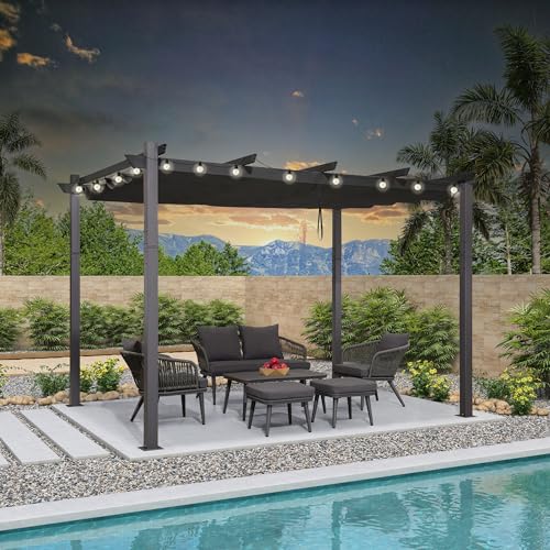 PURPLE LEAF Pergola avec Guirlande Lumineuse Exterieure Pergola Jardin Exterieur 4 x 2,7 m Tissu Teint en Fil, Pergolas Aluminium Toit Rétractable, Gris