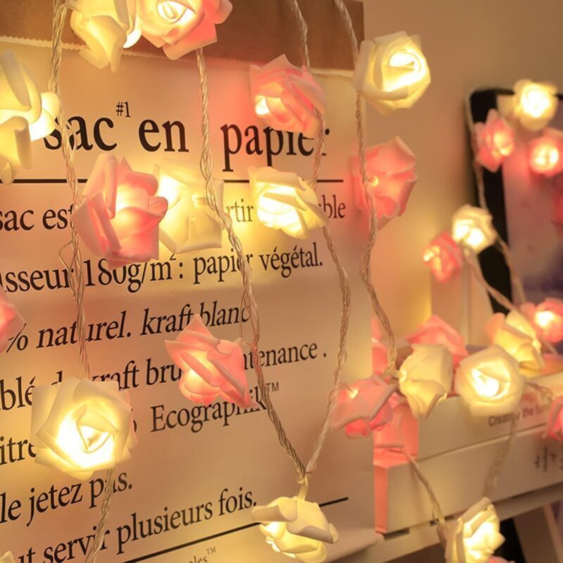 Guirlande Lumineuse Rose, Guirlande Lumineuse Intérieur/Jardin, Guirlande Lumineuse LED, 6M Blanc Chaud 40LED, Décoration Chambre Fille, Bar, Fête,