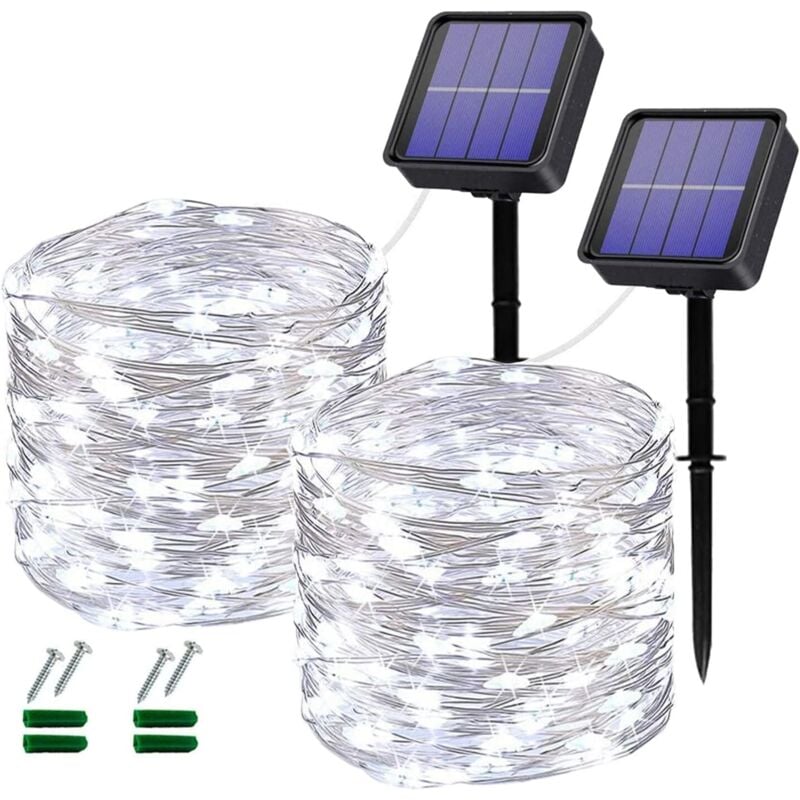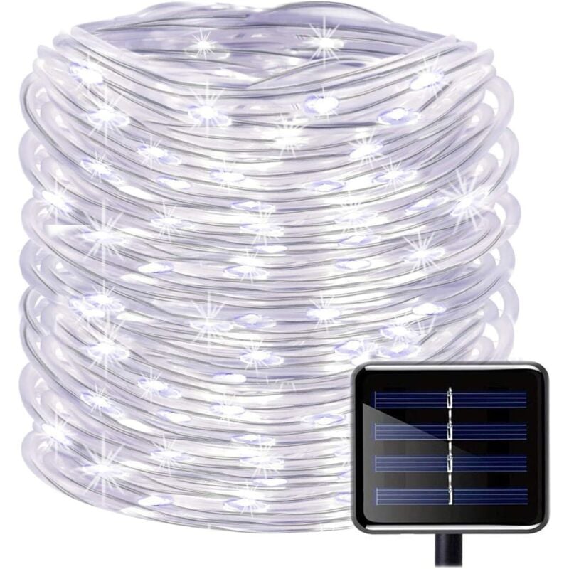Guirlande lumineuse solaire de jardin 50 led - 7 m - 8 modes - Étanche - Pour extérieur et intérieur - Pour clôture, pelouse(blanc chaud)