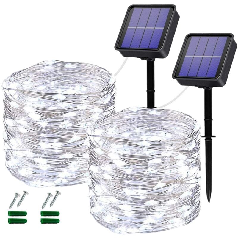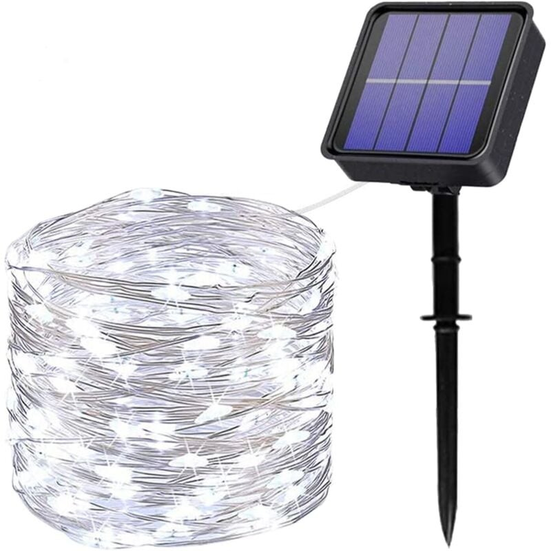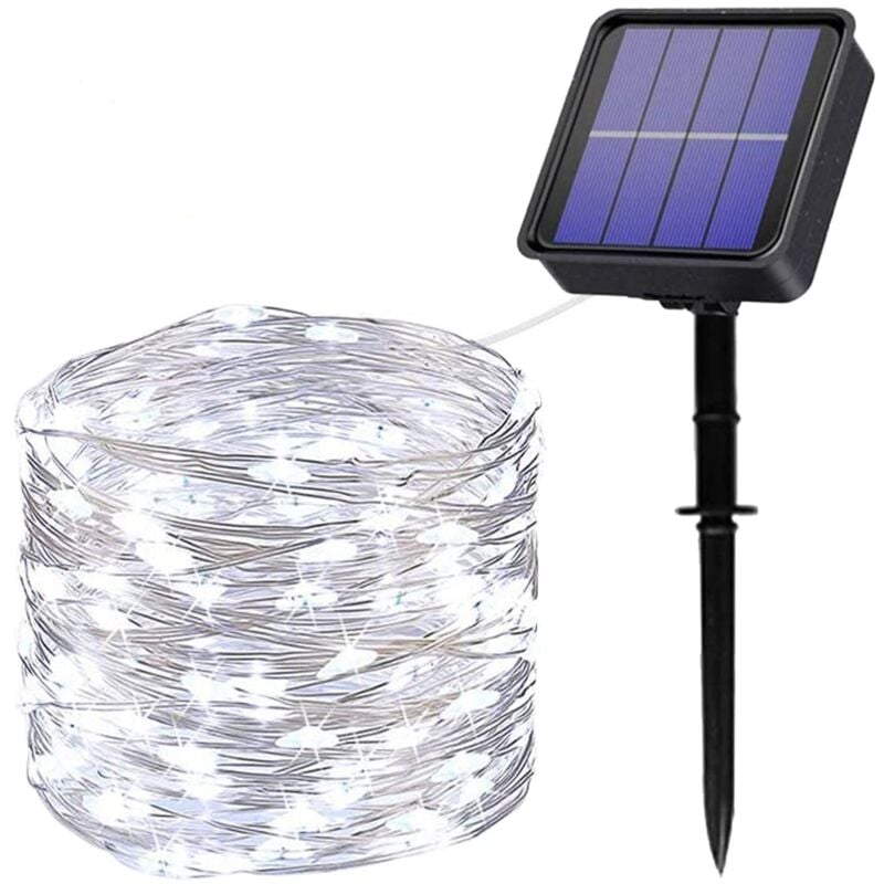 Guirlande solaire extérieur lumineuse jardin, terrasse - Ampoules LED 8 modes - 12 m - Blanc froid - Linxor