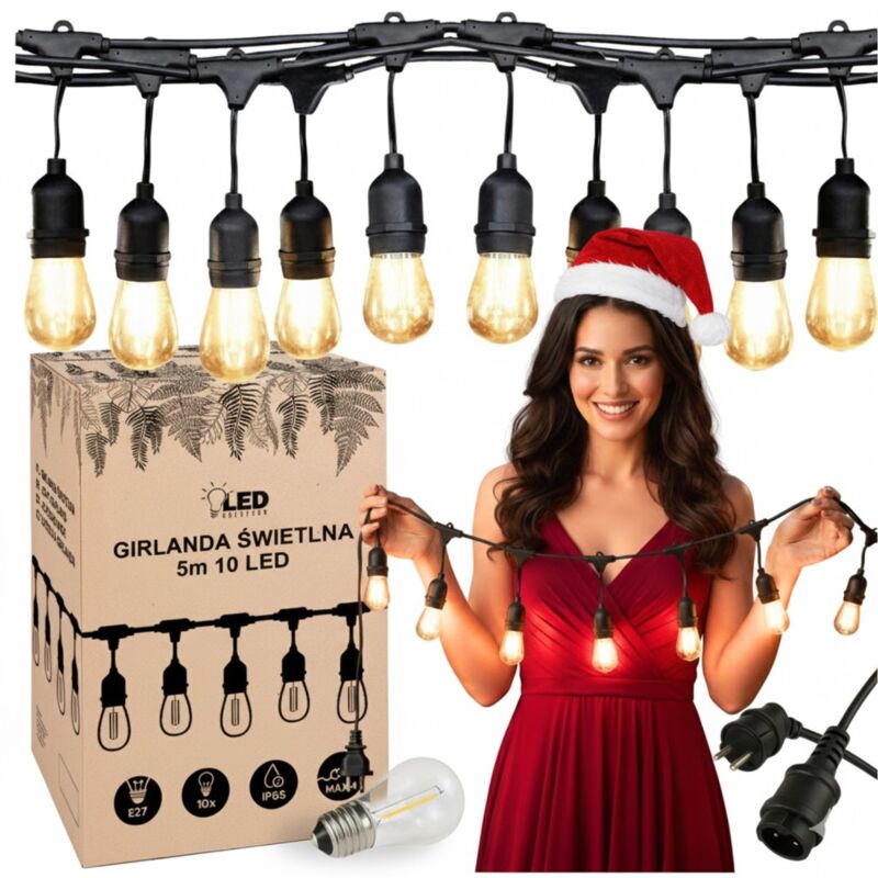 Guirlande lumineuse de jardin 5m x 10 ampoules E27 étanche IP65 toute l'année