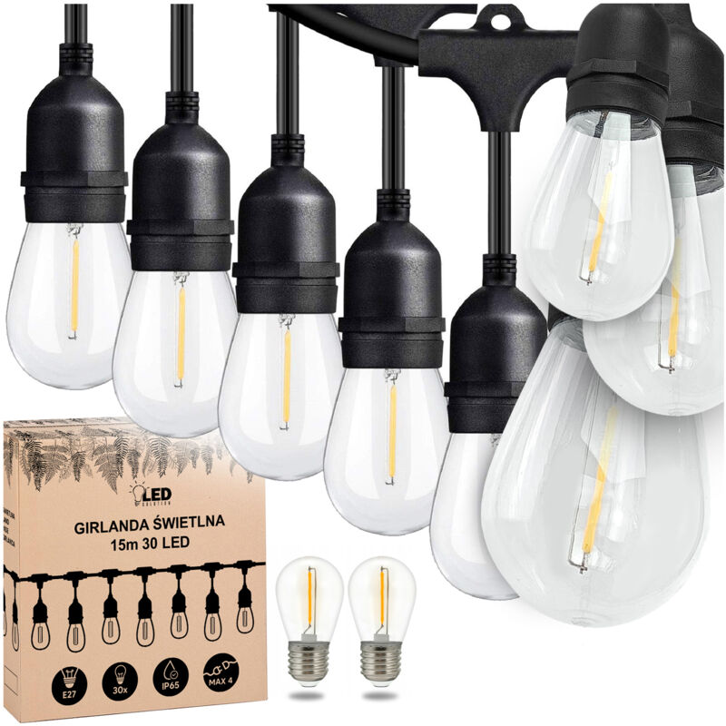 Guirlande lumineuse de jardin 15 m x 30 ampoules E27 étanche IP65, utilisable toute l'année