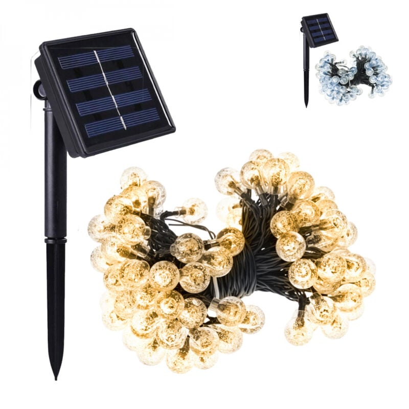 Guirlande solaire extérieur lumineuse jardin, terrasse - Ampoules LED 8 modes - 7 m - Blanc chaud - Linxor