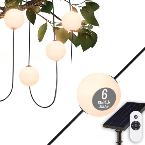 8 seasons Design Glowing Elegance Guirlande lumineuse LED solaire à batterie 5,5 m – Intensité variable – 6 boules blanches (10 cm de diamètre) – Blanc chaud – Pour l'extérieur et l'intérieur – Avec