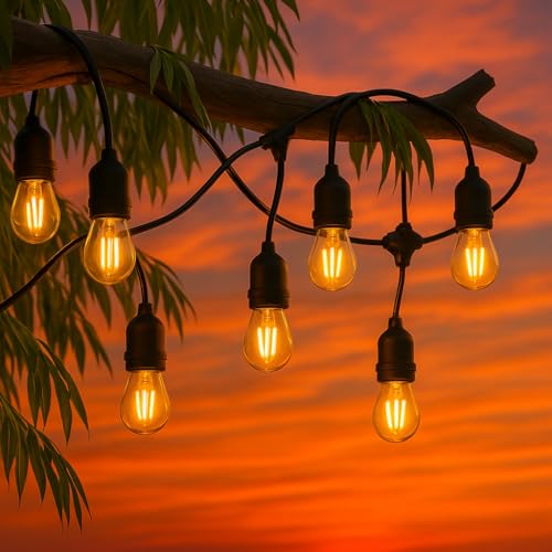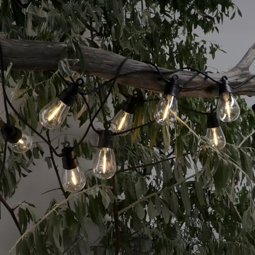 Yuucio Guirlande lumineuse solaire d'extérieur 15 m - 25 + 1 ampoules en plastique - Étanche IP45 - Pour extérieur, jardin, terrasse, arbres, décoration de fête - 2700 K - Blanc chaud