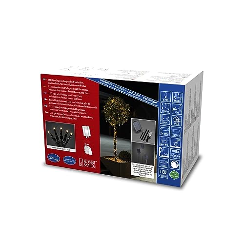 Konstsmide Guirlande lumineuse solaire LED à télécommande, 200 diodes ambrées, extérieur, câble noir, 2 piles au lithium / 1 CR2025 (inclus) - 3623-800SP