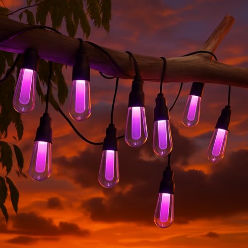 M Ledme – Guirlande lumineuse solaire LED d'extérieur de 7,5 m avec 10 ampoules, couleur RVB à intensité variable, étanche IP65, avec capteur crépusculaire, décoration pour jardin, entrée et fête