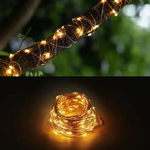 Lumi Jardin Guirlande Lumineuse Solaire en cuivre 100 Micro LED Blanc Chaud Skinny Solar 11.90m 8 Modes
