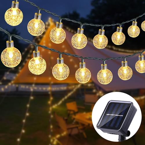 Aogled Guirlande Lumineuse solaire à LED Pour Extérieur, 8 m, Boules de Cristal, Avec Télécommande, Pour Jardin, Terrasse, Balcon, Mariage