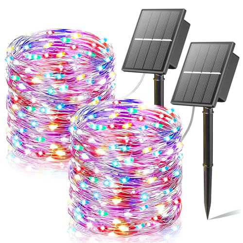 SOLARBABY Lot de 2 Guirlande Lumineuse Exterieur Solaire,2x22m Totale 400 LED Fil de Cuivre Guirlande Lumineuse Solaire Étanche 8 Modes, Guirlande Solar Exterieur Pour Jardin Noël Décoration - Rose