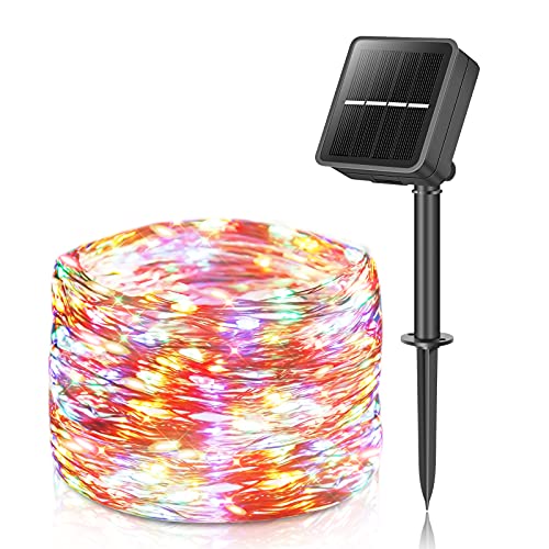 Guirlande lumineuse solaire d'extérieur 10m 100LED, guirlande lumineuse de Noël LED d'extérieur avec 8 modes + minuterie + télécommande, guirlande pour jardin, balcon, mariage, multicolore