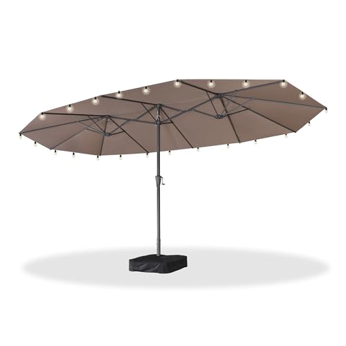 Purple Leaf Parasol Rectangulaire Inclinable 455 x 270 cm avec Guirlande Lumineuse Solaire, Grand Parasol de Jardin Extérieur, Pied Included, pour Terrasse, Jardin, Balcon
