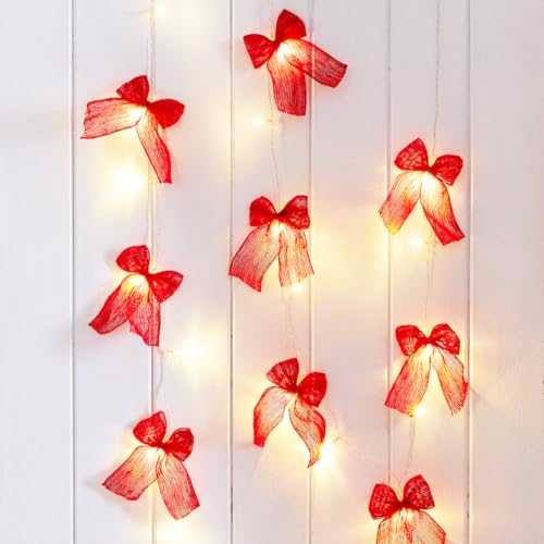 Guirlande lumineuse Talking Tables 2,6 m avec nœud en tissu et 10 LED, fil argenté avec chambre rouge, Noël, mariage, Saint-Valentin, fête de fiançailles, fête prénuptiale, anniversaire