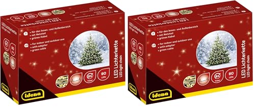 Idena 8325058 - Guirlande lumineuse avec 80 LEDs en blanc chaud, avec fonction minuterie 8 heures et transformateur, pour usage intérieur et extérieur, pour les fêtes, Noël, décoration, mariage