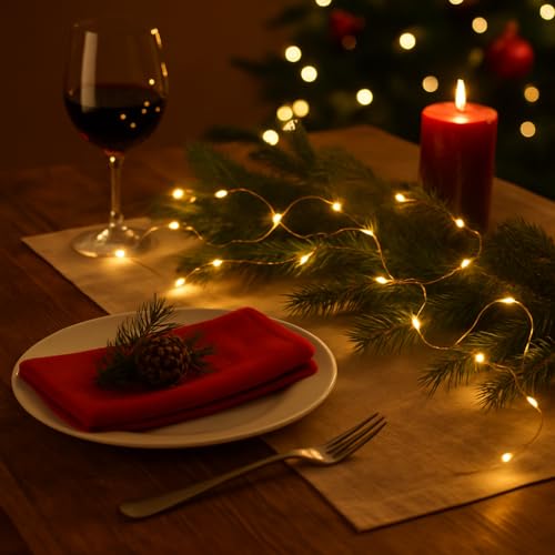 Talking Tables Guirlande lumineuse LED à piles pour une utilisation en intérieur avec fil doré pour décoration de table de Noël, mariage, Saint-Valentin, fiançailles, Noël, 60 ampoules de 3 m