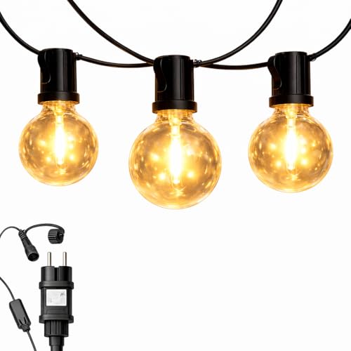 Guirlande Lumineuse Guinguette Exterieur 9M - ST38 30FT 15+2 LED Ampoules de Guirlandes Jardin Lumiere Exterieure Connectable IP54 Imperméable Guirlande Lumières Extérieur Terrasse Pergola Balcon