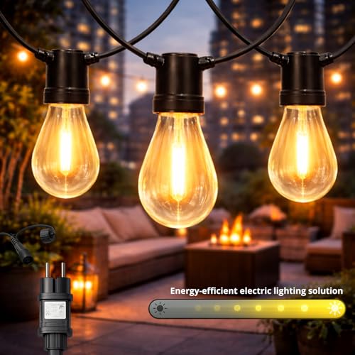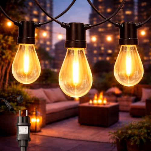 Guirlande Lumineuse Guinguette Exterieur 18M - ST38 60FT 30+2 LED Ampoules de Guirlandes Jardin Lumiere Exterieure Connectable IP54 Imperméable Guirlande Lumières Extérieur Terrasse Pergola Balcon