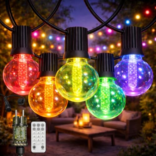 Guirlande Lumineuse Exterieure LED 20M - G40 Guirlande Guinguette Exterieur avec Télécommande 4 Modes Dimmable IP44 Imperméable Guirlande Lumières Extérieur Terrasse Mariage Pergola Balcon Déco