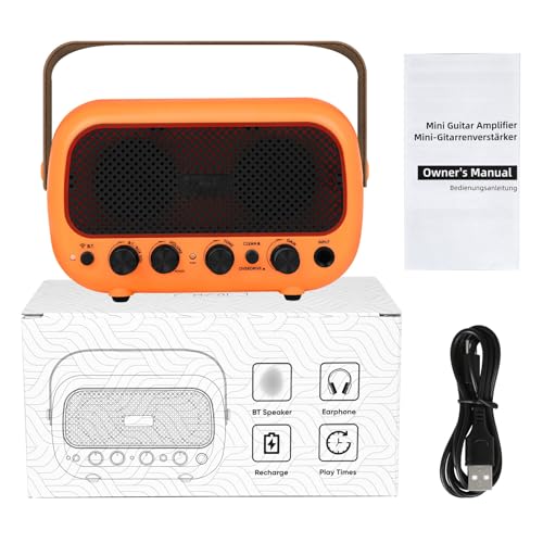 Eujgoov Ampli de Guitare Portable 5 W, Haut-Parleur Bluetooth avec Batterie Rechargeable et Prise Casque pour la Pratique de la Guitare électrique et Les Performances en Extérieur (Orange)