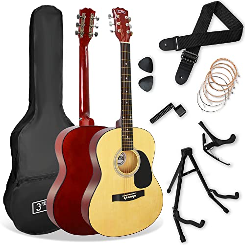3rd Avenue Pack Guitare Acoustique 4/4 Taille Standard pour Débutants, Housse, Médiators, Jeu de Cordes de Rechange, Stand, Sangle, Capodastre – Naturel