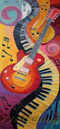 Musique Peinture Numero Adulte, Guitare Peinture Numero Enfant avec Cadre, DIY Loisirs Créatifs Adultes, Paint by Numbers Kits avec Pinceaux et Pigment Acryliques, Deco Printemps, 90x110cm 8-7500