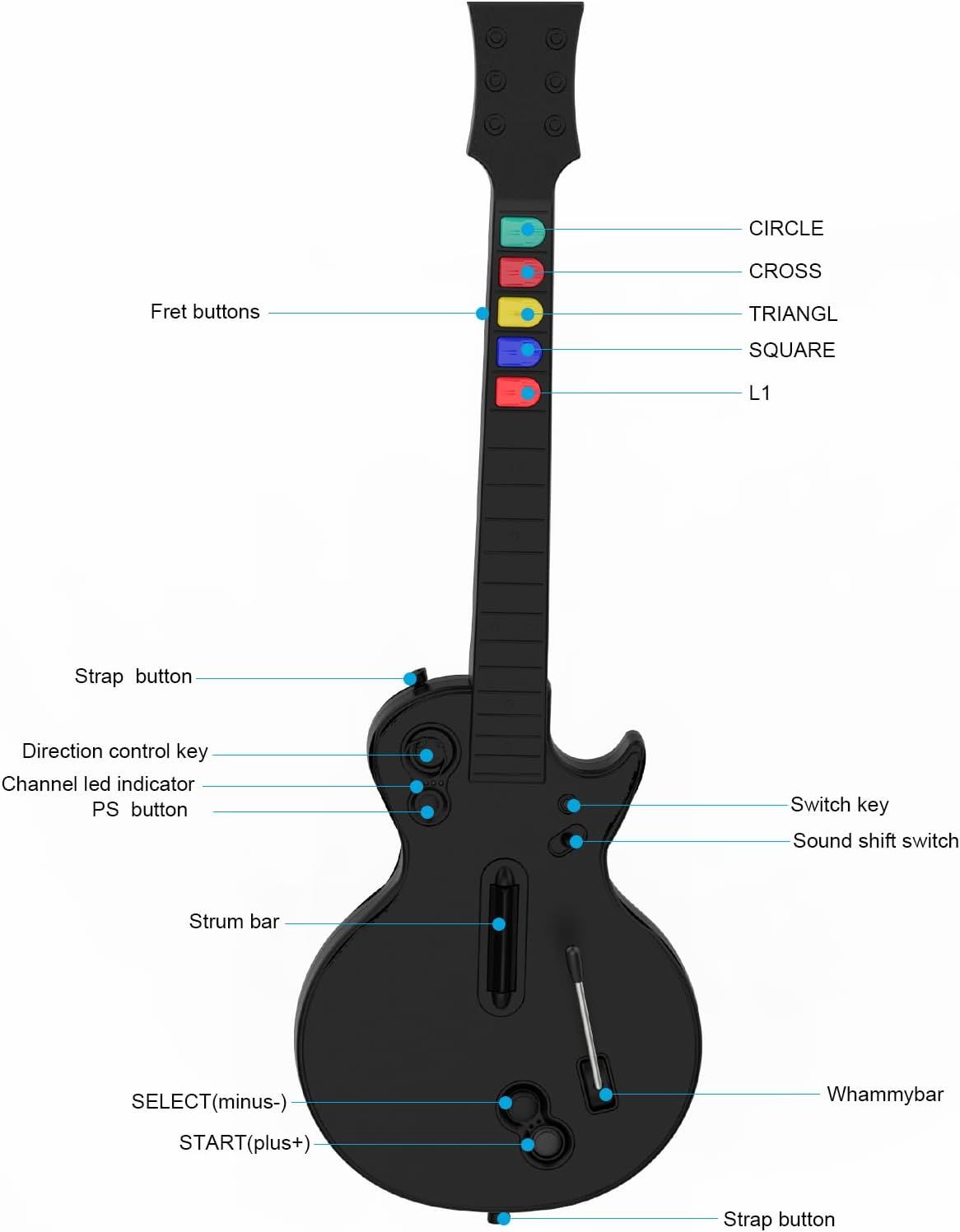 Manette Guitar Hero Pour Pc Et Ps3,Guitare Sans Fil Pour Jeux Guitar Hero 3/4/5 Et Rock Band 1/2,Guitare Guitar Hero Contrôleur Avec Sangle De Guitare (Ten Keys/Black)