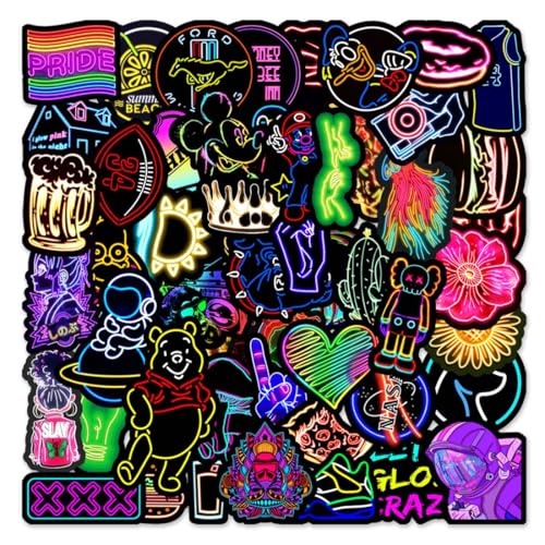 Quesuc Graffiti Néon Vinyle Imperméable Autocollant Pour Ordinateur Portable Bagages De Voyage Valise Bouteille D'Eau Skateboard Vélo Voiture Pare - Chocs Casque Guitare Jouet Scrapbooking [50Pcs]