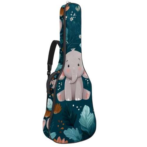 Sac de transport pour guitare classique, basse électrique, 101,6 cm, 106,7 cm, motif bébé éléphants de dessin animé avec feuilles sur fond bleu sarcelle, Multicolore 07, 42.9x16.9x4.7 in, Sac à dos