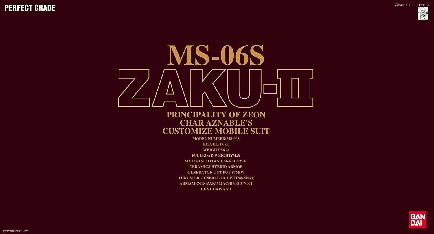 Gundam Perfect Grade Plastic Model Kit 1/60 MS-06S Zaku II