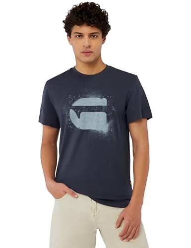 G-STAR Spray G Logo R T T-Shirt, Bleu (India Ink D26833-d101-h392), S Hommes