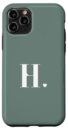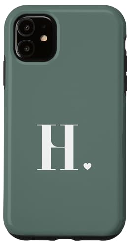 Monogramme Vert Sauge avec Lettre H Initiale en Forme de cœur Coque pour iPhone 11