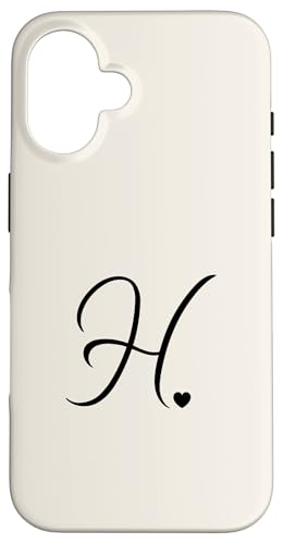 Lettre H Beige/Vanille Initiale cœur Monogramme Design Mignon Coque pour iPhone 16