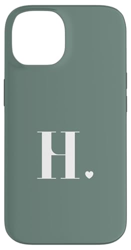 Monogramme Vert Sauge avec Lettre H Initiale en Forme de cœur Coque pour iPhone 13