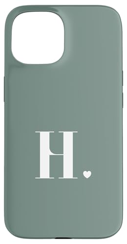 Monogramme Vert Sauge avec Lettre H Initiale en Forme de cœur Coque pour iPhone 15