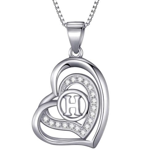 Morella Collier Femme Pendentif en Forme de Coeur avec Lettre H Argent 925 rhodié avec zircons Blancs 46 cm