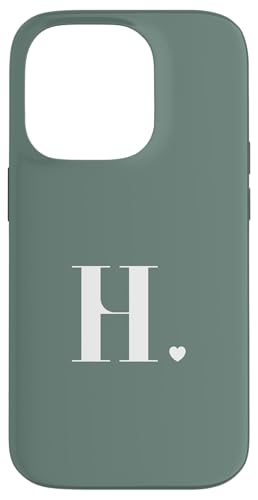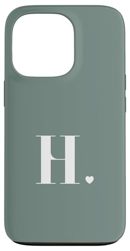 Monogramme Vert Sauge avec Lettre H Initiale en Forme de cœur Coque pour iPhone 13 Pro