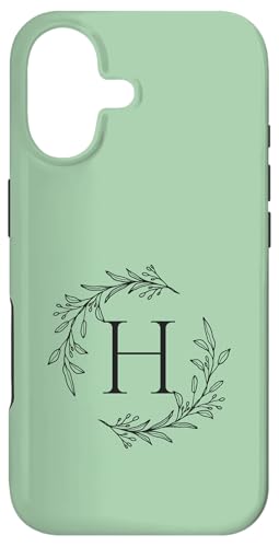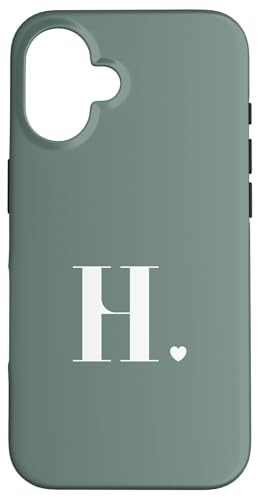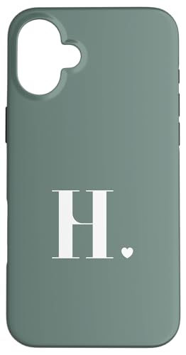 Monogramme Vert Sauge avec Lettre H Initiale en Forme de cœur Coque pour iPhone 16