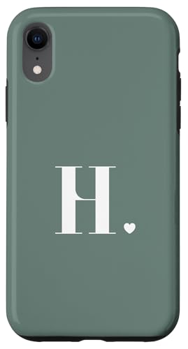 Monogramme Vert Sauge avec Lettre H Initiale en Forme de cœur Coque pour iPhone XR