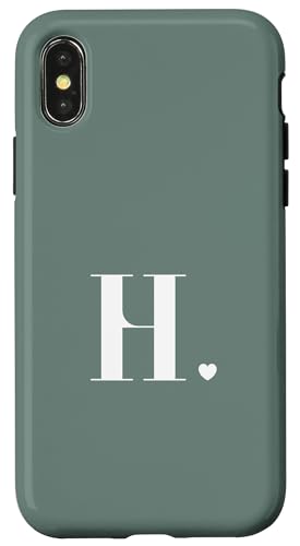 Monogramme Vert Sauge avec Lettre H Initiale en Forme de cœur Coque pour iPhone X/XS