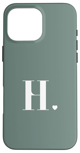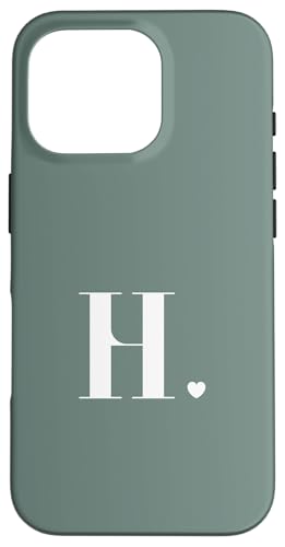 Monogramme Vert Sauge avec Lettre H Initiale en Forme de cœur Coque pour iPhone 16 Pro Max
