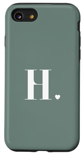Monogramme Vert Sauge avec Lettre H Initiale en Forme de cœur Coque pour iPhone SE (2020) / 7/8