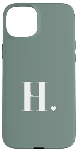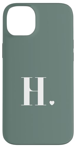 Monogramme Vert Sauge avec Lettre H Initiale en Forme de cœur Coque pour iPhone 15 Plus