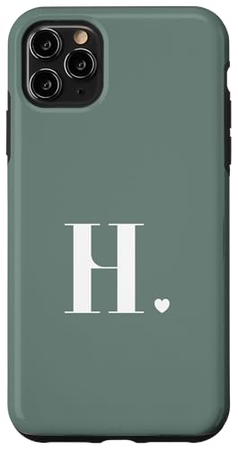 Monogramme Vert Sauge avec Lettre H Initiale en Forme de cœur Coque pour iPhone 11 Pro Max
