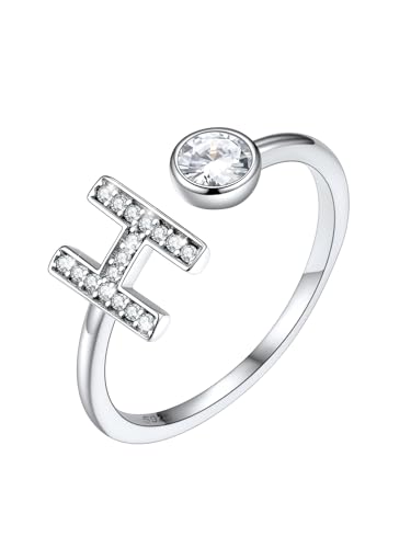SILVERCUTE Bague Femme Lettre H Ouverte en Argent Sterling 925 Orné de Zircon Cubique