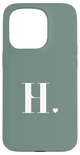Monogramme Vert Sauge avec Lettre H Initiale en Forme de cœur Coque pour iPhone 15 Pro