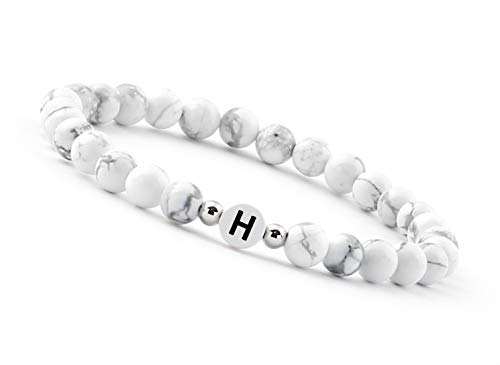 GD GOOD.designs EST. 2015 Bracelet de couple avec la lettre H | Bracelet partenaire en perles de howlite (lettre H)