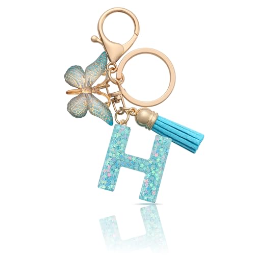 MORSUNBELA porte clef avec lettre H initiale porte clé femme porte clef personnalisable, papillon pendentif, cadeau pour femme - bleu